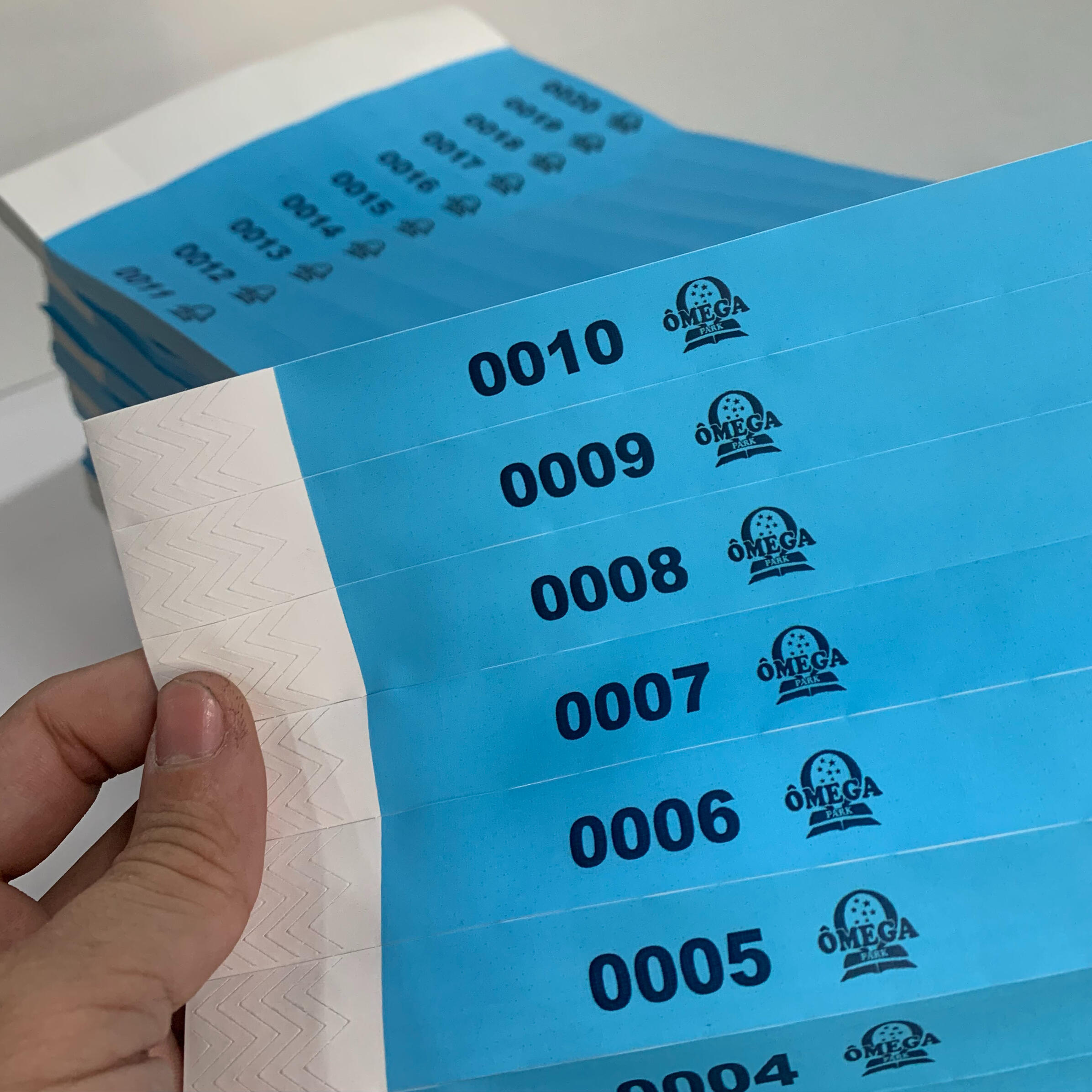 Oferecemos pulseiras com impressão colorida total ou impressão padrão, com lacre de segurança inviolável que impede a transferência entre pessoas.